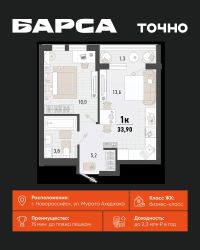 1-к, Барса ЖК, 1в Показать на карте