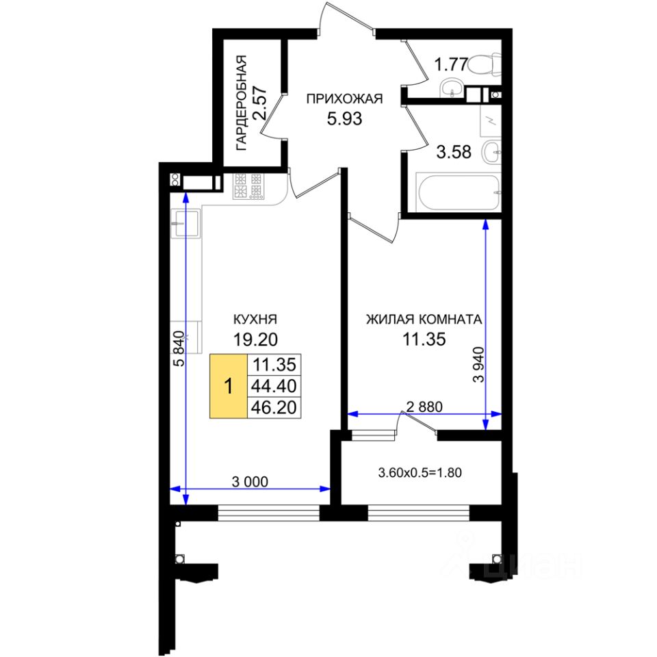 Продаётся 1-комнатная квартира в строящемся доме (Корпус В2), срок сдачи: IV-кв. 2026, общей площадью 46.18 кв.м., на 2 этаже. Обособленный тихий жилой микрорайон класса комфорт-плюс в Южном районе города Новороссийска, расположенный вдоль новой автодороги ''Южный обход''. Рядом находится крупный транспортный узел. Пересечение Мысхакского шоссе и автодороги Южный обход. Застройщиком будет запущен бесплатный электротранспорт до пляжа в с. Мысхако. Передовые системы безопасности, видеонаблюдение, закрытая территория и бесконтактный электронный пропуск.