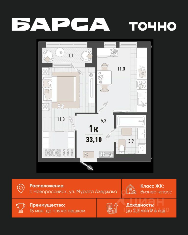 1-к, Барса ЖК, 1в