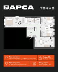 Продаётся 2-комнатная квартира в строящемся доме (Корпус А1), срок сдачи: IV-кв. 2026, общей площадью 67.89 кв.м., на 7 этаже. Обособленный тихий жилой микрорайон класса комфорт-плюс в Южном районе города Новороссийска, расположенный вдоль новой автодороги ''Южный обход''. Рядом находится крупный транспортный узел. Пересечение Мысхакского шоссе и автодороги Южный обход. Застройщиком будет запущен бесплатный электротранспорт до пляжа в с. Мысхако. Передовые системы безопасности, видеонаблюдение, закрытая территория и бесконтактный электронный пропуск.