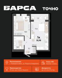 1-к, Барса ЖК, 2в Показать на карте