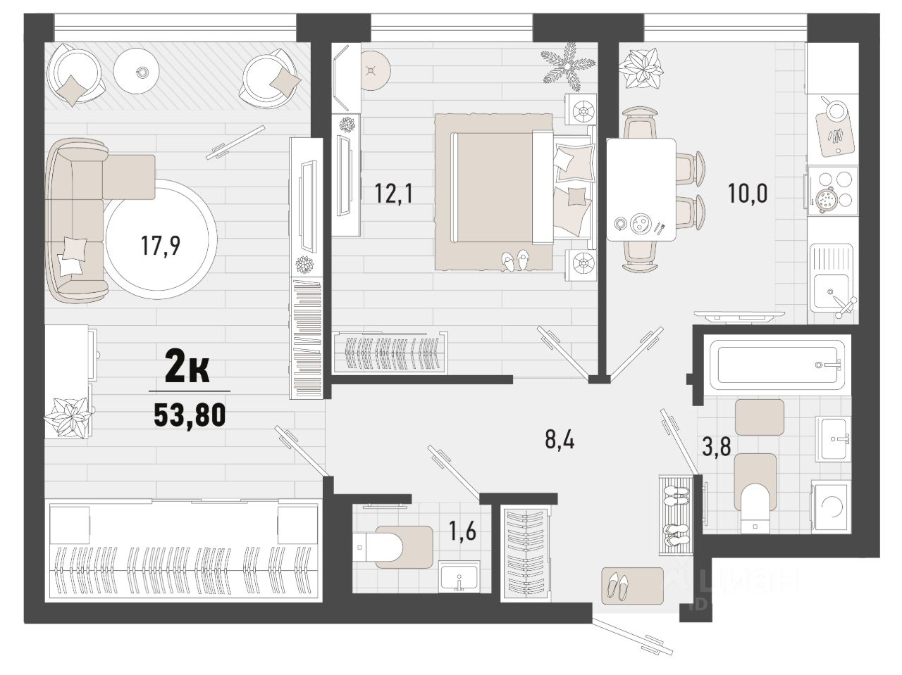 2-к, Барса ЖК, 1в