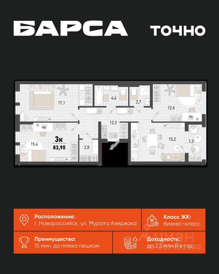 83 м² · Этаж 6 из 15