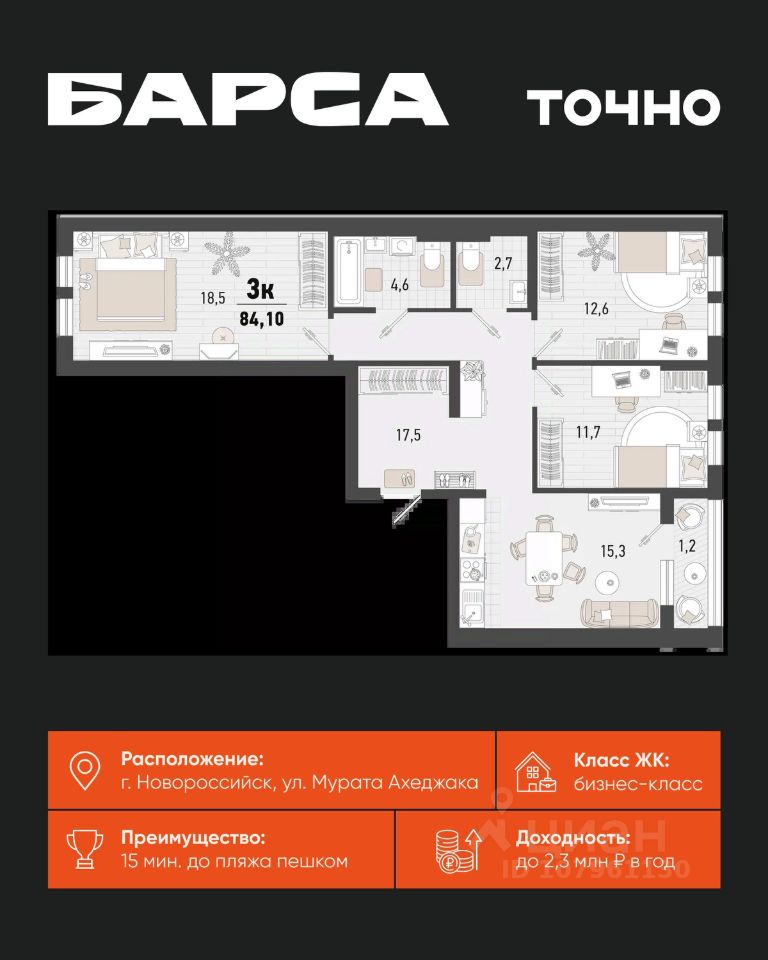 3-к, Барса ЖК, 2в