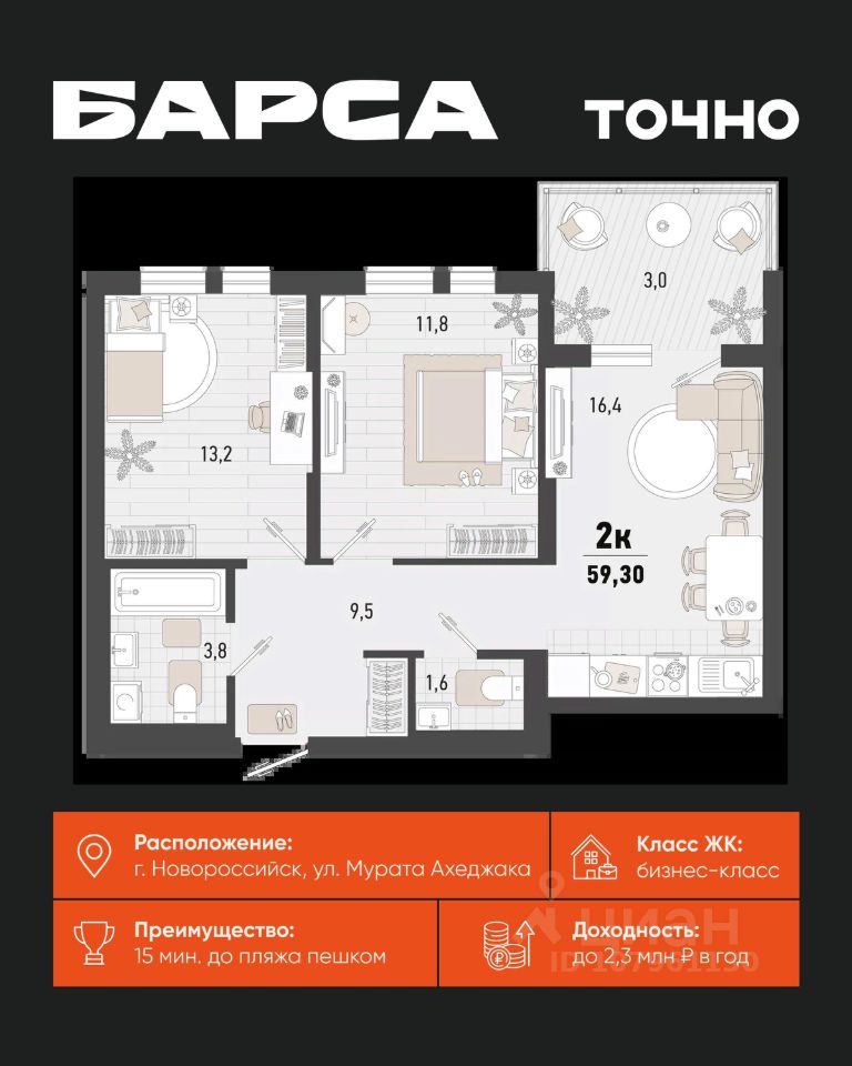 2-к, Барса ЖК, 2в