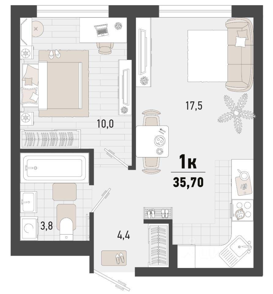 35 м² · Этаж 21 из 24
