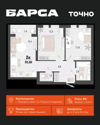 Жилой комплекс ''Барса'' расположился в самом живописном Южном районе Новороссийска, всего в 15 минутах ходьбы от пляжа ''Алексино''. Море будет видно даже из окон невысоких этажей. Проект объединяет просторные квартиры с панорамными окнами, продуманные зоны отдыха и площадки для спорта, прогулочный бульвар, беседки и уникальные арт-объекты. В жилом комплексе запланированы детский сад на 380 мест и школа на 1 750 мест. Больше не нужно выбирать между жизнью на курорте и в мегаполисе. ''Барса'' — новый проект для безупречной жизни людей на побережье!
