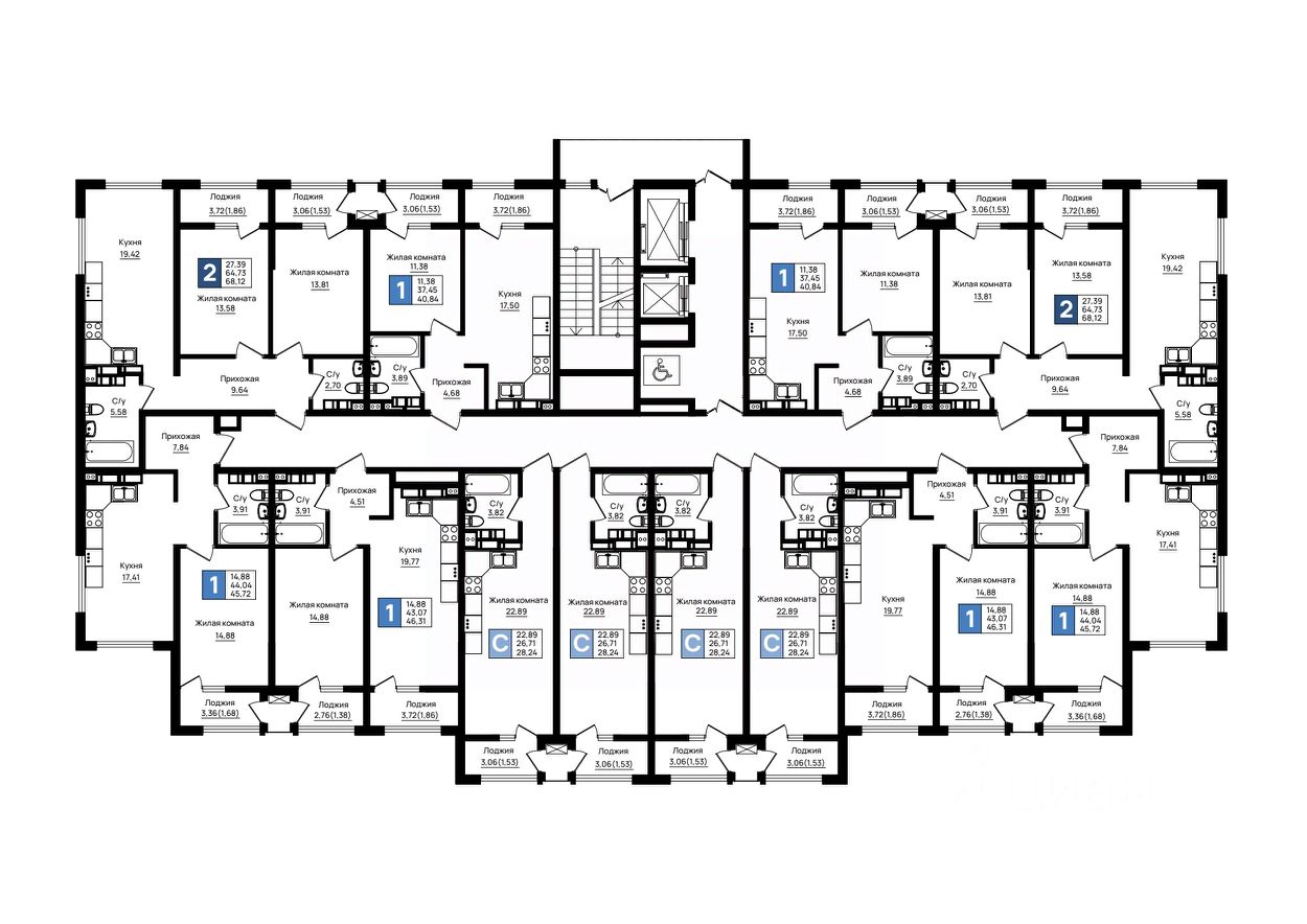 68 м² · Этаж 16 из 18