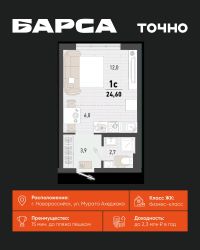 1-к, Барса ЖК, 1в Показать на карте