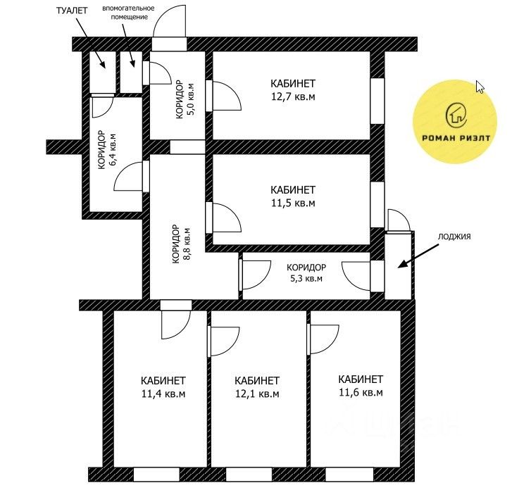 Нежилое помещение площадью 87.2 кв.м верх ул. Куникова в здании паспортно-визовой службы рядом с Ж/К ''Облака''. Отдельный вход. Помещение имеет коридорную схему расположения кабинетов со своим сан узлом и подсобным помещением. Подходит для средней компании, бухгалтерского отдела, торгового представительства и т. д. Часть стен выполнены из легких материалов, что дает возможность перепланировки по своему усмотрению. этаж -1 кабинет-12.7кв.м кабинет-11.5 кв.м кабинет-11.4кв.м кабинет-12.1кв.м кабинет-11.6кв.м коридор-5.3кв.м+8.8 кв.м+5кв.м сан.узел.-6.4 кв.м Хорошее расположение дома, проходное место, рядом остановка, магазины, организации. Здание видно с основной дороги, хороший заезд имеется стояночная площадка возле дома.