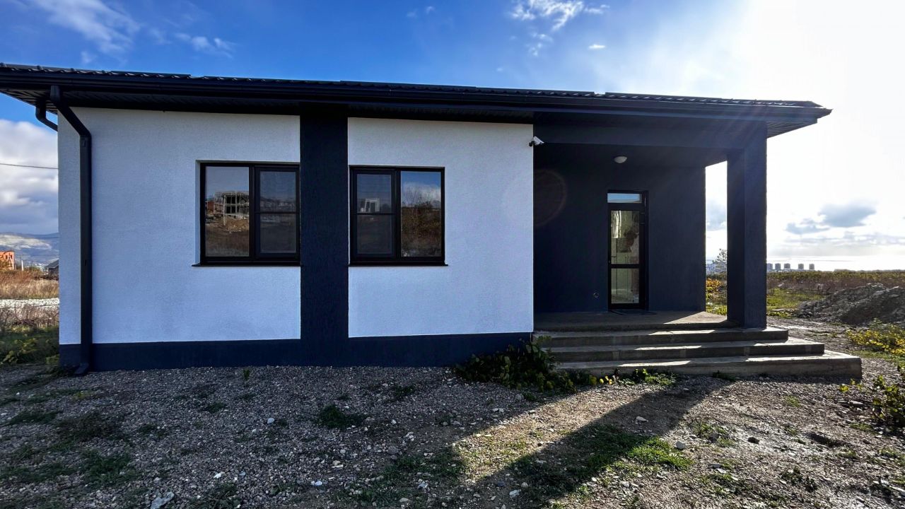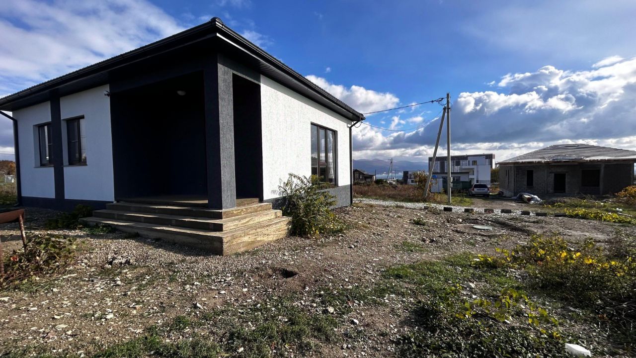 В продаже дом под чистовую отделку. Удобная планировка. Сделана стяжка. Разводка электричества и отопления. Высокие потолки. Панорамное остекление. Потолки 3,20. Скважина 55 м, септик - кольца бетонные. Тихое и спокойное место. Рядом строятся соседи. Есть все этапы стройки и разводки всех коммуникаций. Газ на улице, соседи получают техусловия. Поможем в одобрении ипотеки. Дом оформлен в собственность. Строили по уведомлению на строительство. До моря 7 минут езды.