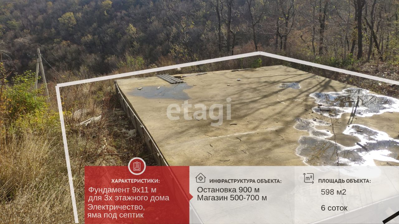 Продается земельный участок 6 соток с готовым фундаментом! Этот участок — ваша уникальная возможность построить дом мечты в живописном месте с великолепным видом на лес и город. Вы получаете не просто землю, а уже готовую основу для строительства: залит фундамент 9х11 под три этажа, что значительно упростит процесс возведения вашего жилья. Все коммуникации уже выведены, а также подготовлена яма под септик и проведены трубы к ней. Это значит, что вы сможете начать строительство без задержек и дополнительных затрат. Покупая этот участок, вы инвестируете в комфортное будущее для себя и своей семьи. Уникальное расположение на возвышенности обеспечит вам не только прекрасные виды, но и свежий воздух, что делает этот участок идеальным для постоянного проживания или загородного отдыха. Станица Натухаевка предлагает развитую инфраструктуру: в шаговой доступности находятся магазины, школы и детские сады, что делает повседневную жизнь удобной и комфортной. Вы сможете наслаждаться спокойствием загородной жизни, при этом имея возможность быстро добраться до города. Не упустите шанс стать владельцем этого уникального земельного участка. Звоните сейчас, чтобы записаться на показ и сделать шаг к своей мечте, пока этот объект не купили!. Дополнительно оплачивается комиссия с покупателя. Код пользователя: 189842 Номер в базе: 8326446
