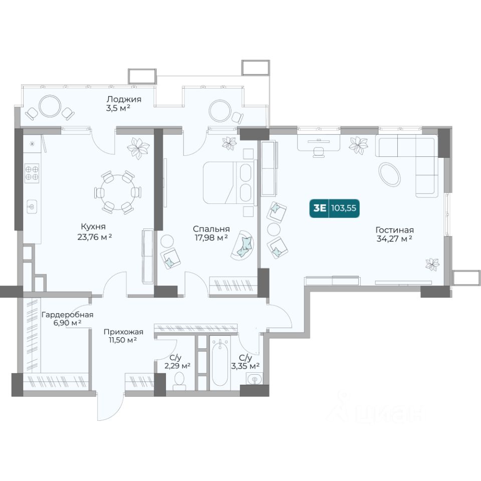 Общая площадь103,55 м2