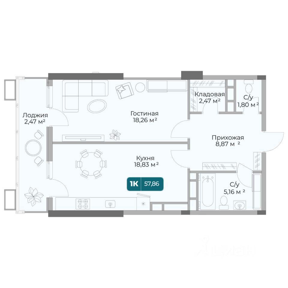 Общая площадь57,86 м2