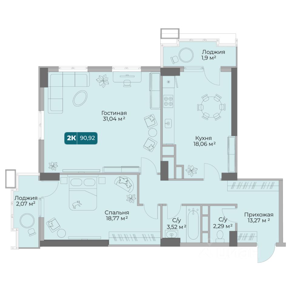 Общая площадь90,92 м2