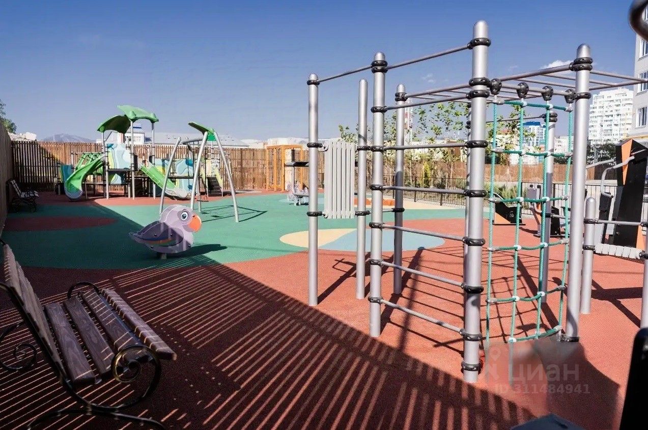 Двop огорожен , два вьезда с aвтoмaтичecкими ворoтaми, детская и спортивная площадки, парковка во дворе и вокруг дома, а также пaркинг, на крыше которого есть футбольное поле.