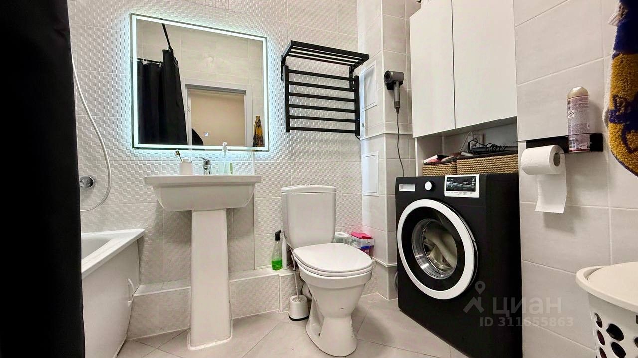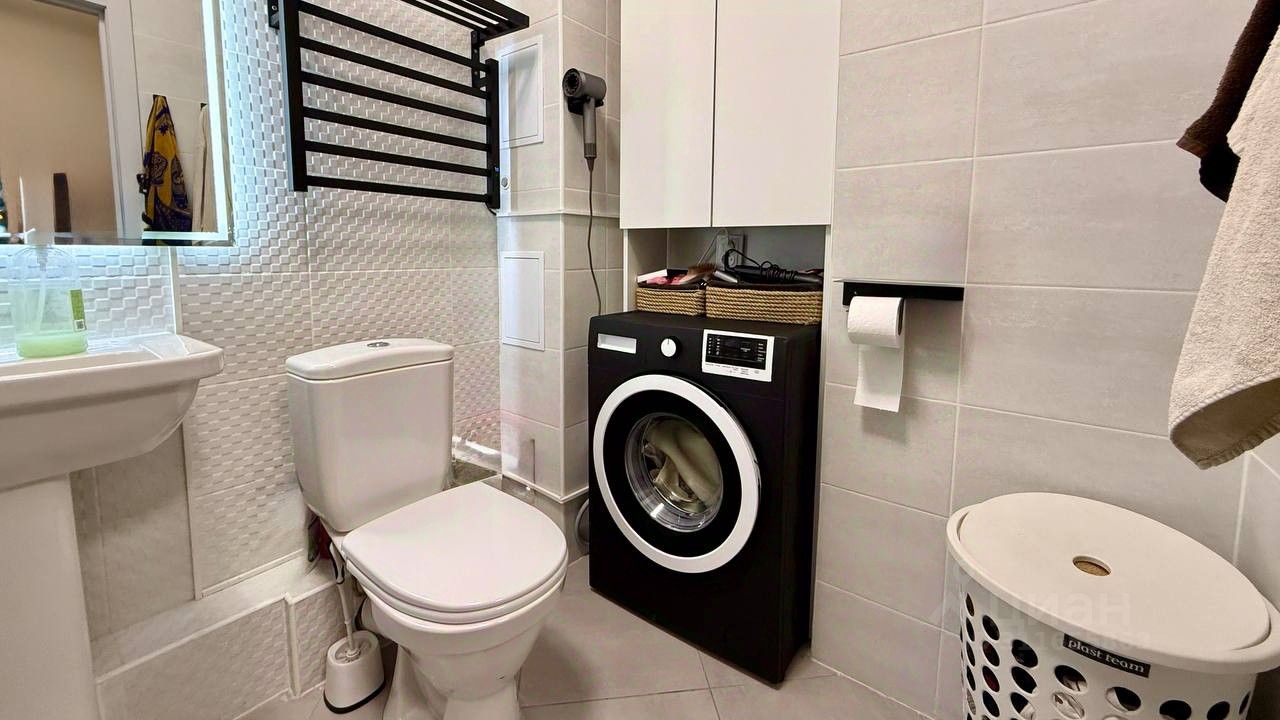 В санузле 4,2 кв.м плитка Керама Мараци, установлен унитаз, ванная, есть выводы под стиральную машину.