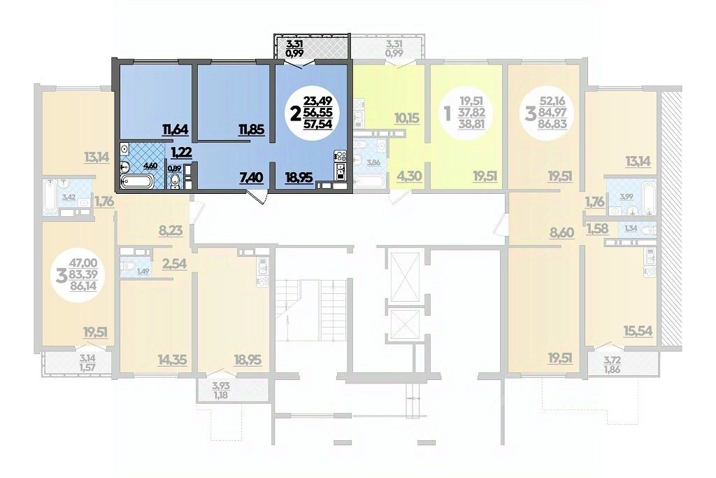 Общая площадь57,54 м2