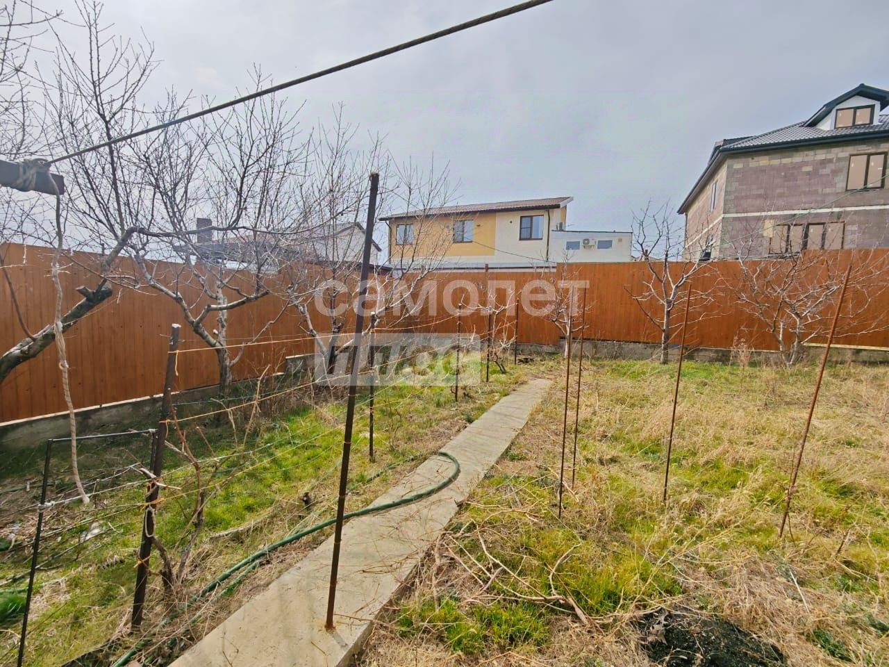 Во дворе два гаража, места под стоянку автомобилей. В огороде высажены плодовые деревья, имеется теплица.