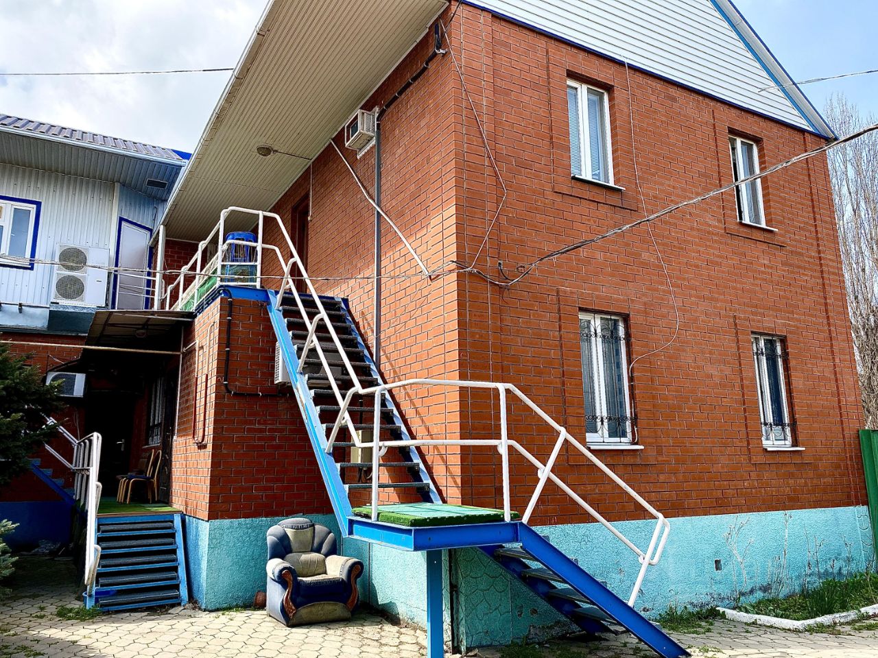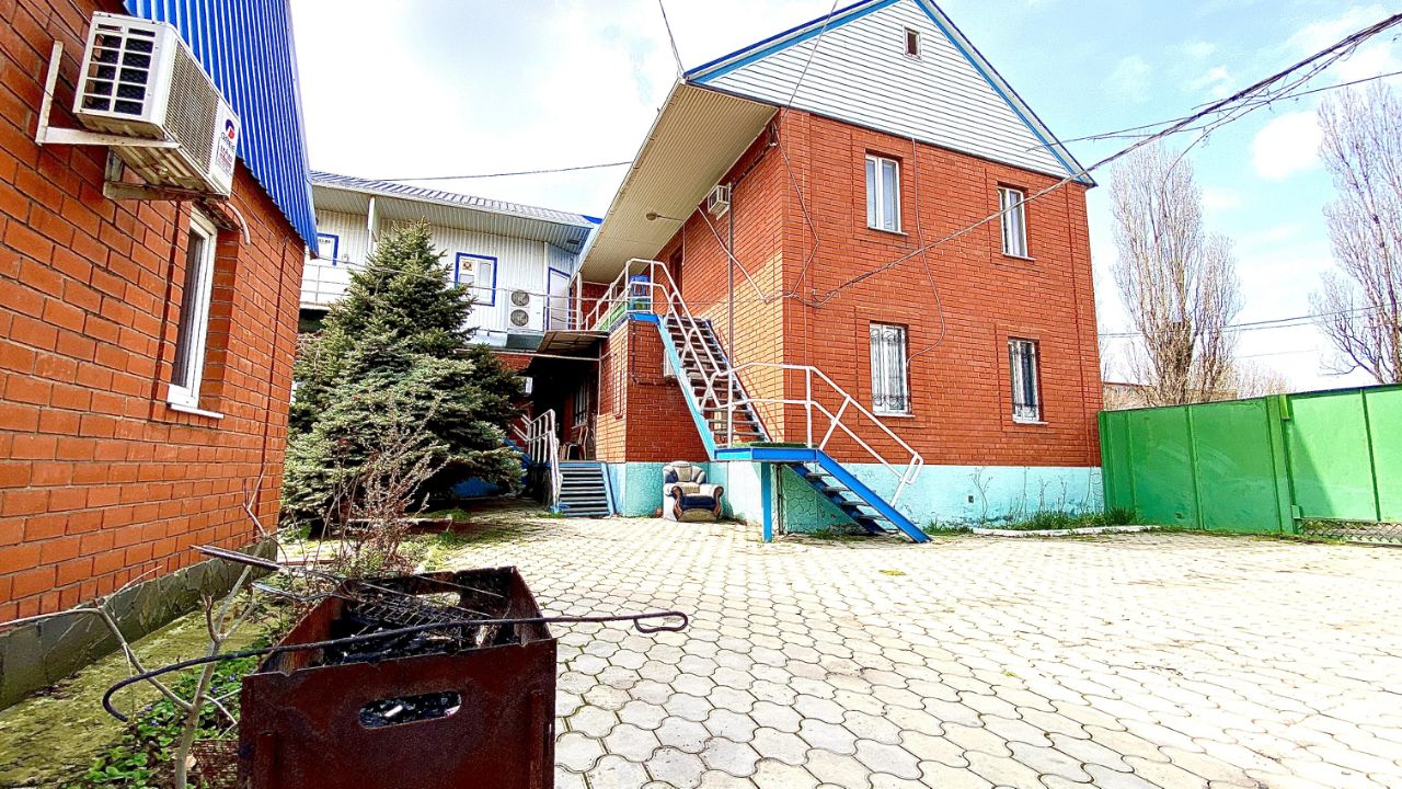 Продается дом с номерами для сдачи отдыхающим на берегу Ейского лимана. На участке 8 соток расположено действующее кафе 100 кв.м. со вторым этажом ( была бильярдная). Кроме того имеется гараж с надстройкой и сауна на электричестве с мансардным этажом. На первом этаже дома две спальни, кухня и санузел. Можно проживать или сдавать. На втором этаже четыре номера. Над сауной есть двухкомнатный номер. Над гаражом две комнаты. Отопление в доме газовым котлом. Подробнее по телефону. Есть полное видео двора и всех строений.