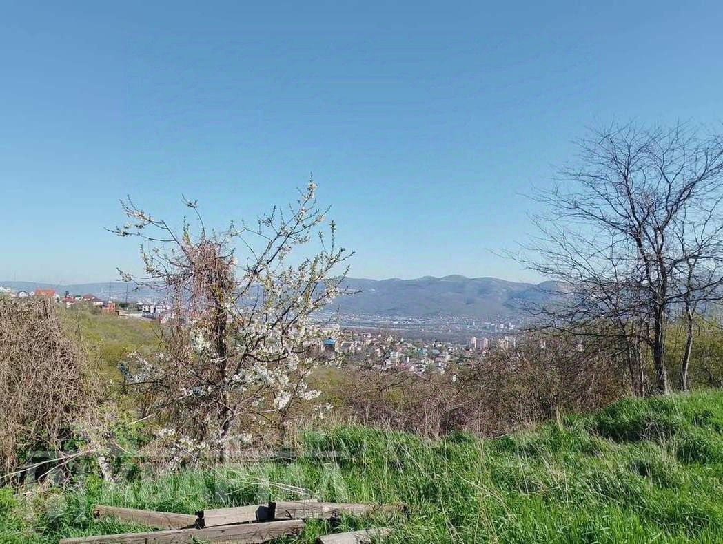 Ровный участок с видом на горы и лес.