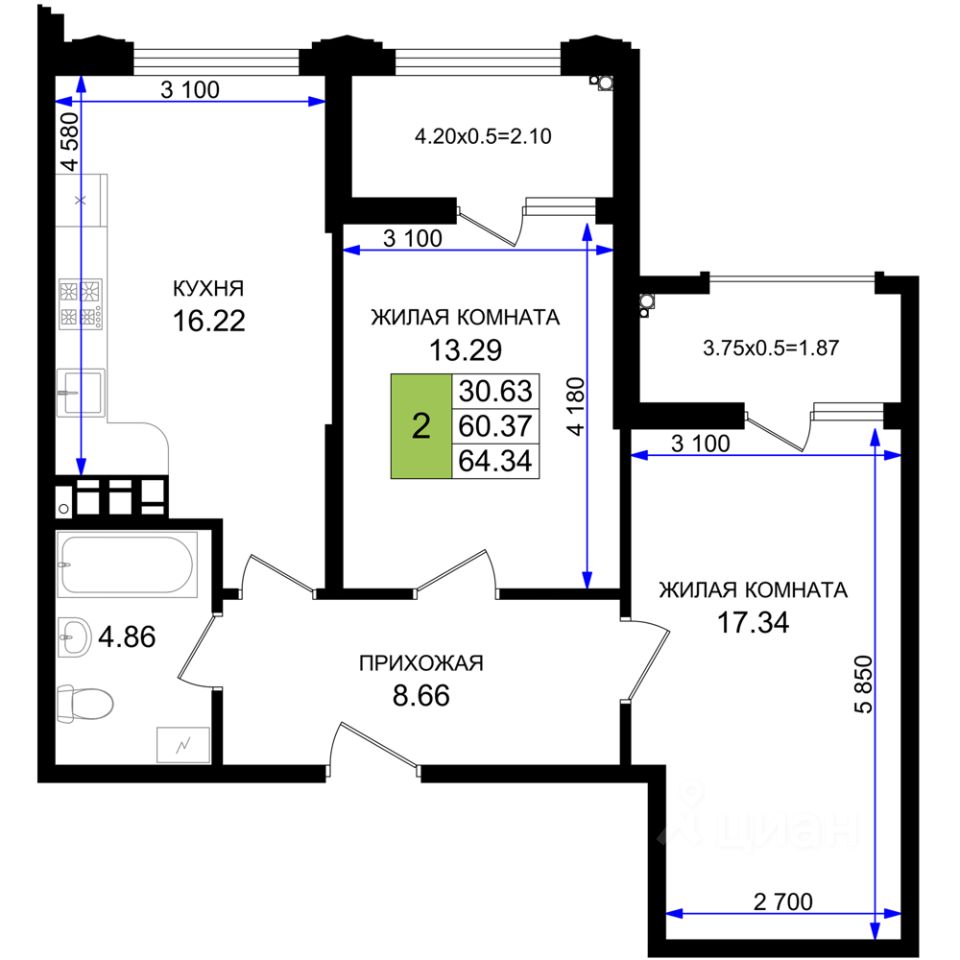 продам 2-к, Новороссийск22 185 075 ₽