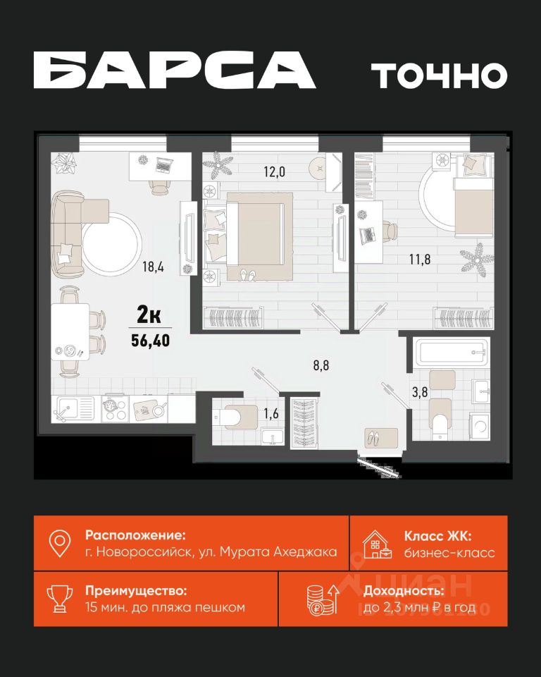 продам 2-к, Новороссийск11 299 176 ₽
