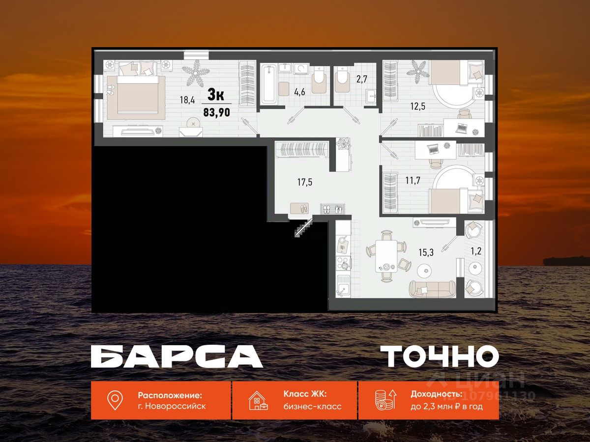 продам 3-к, Новороссийск20 455 000 ₽