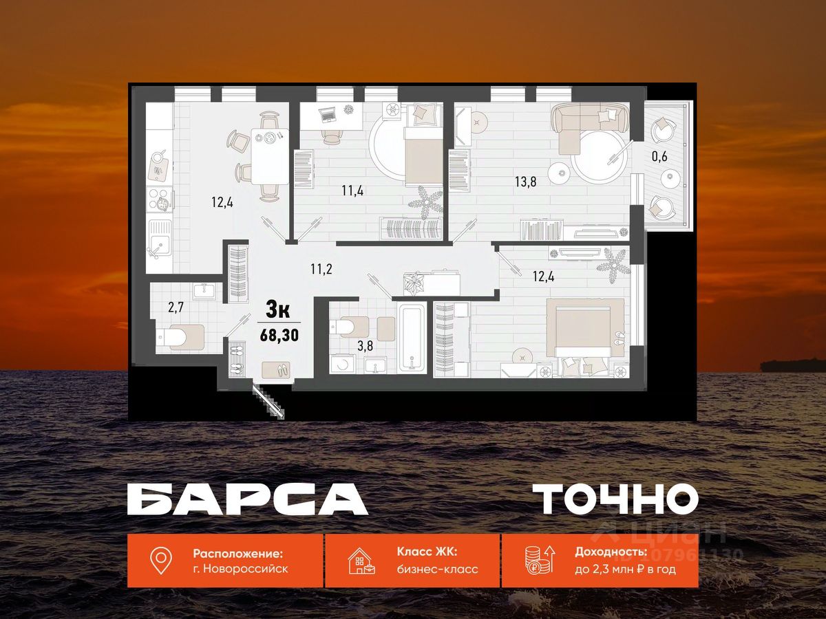 продам 3-к, Новороссийск16 290 000 ₽