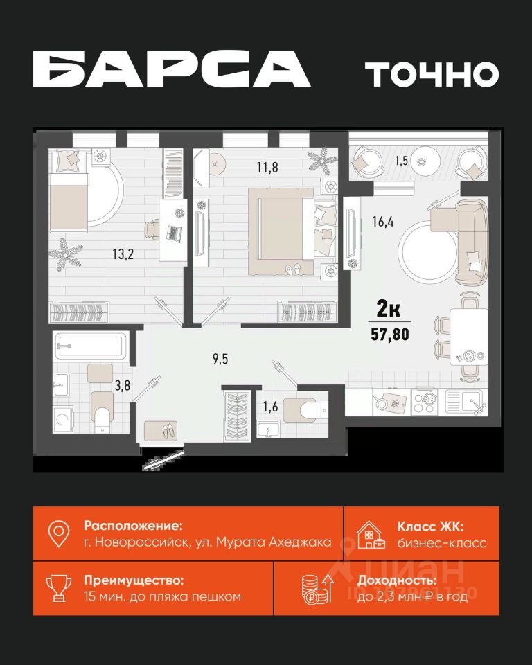 продам 2-к, Новороссийск17 923 780 ₽