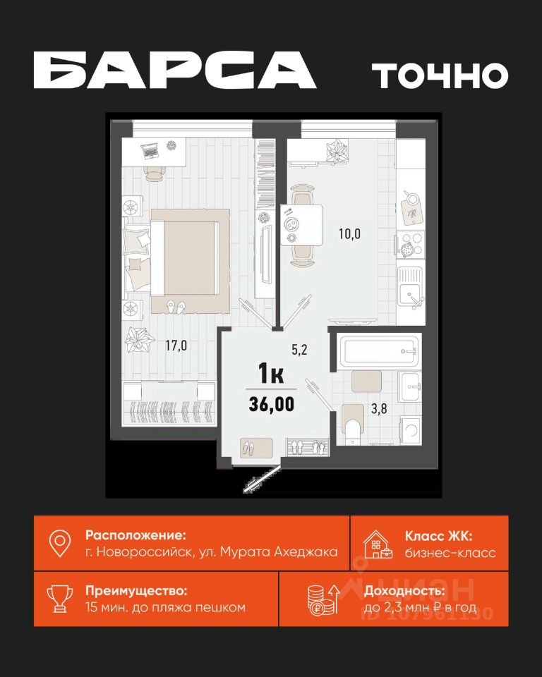 продам 1-к, Новороссийск8 672 400 ₽