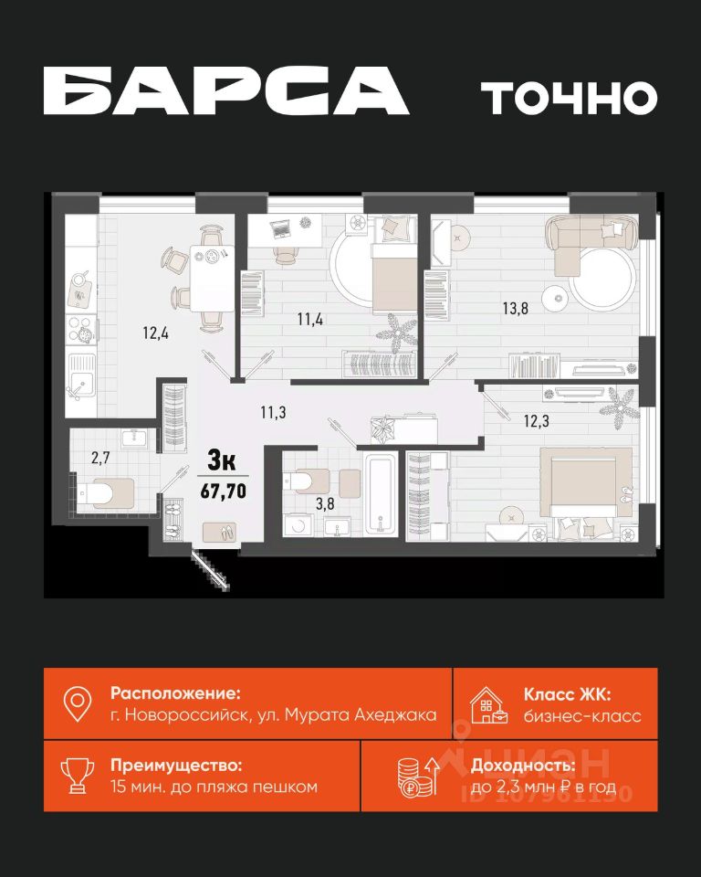 продам 3-к, Новороссийск13 577 235 ₽