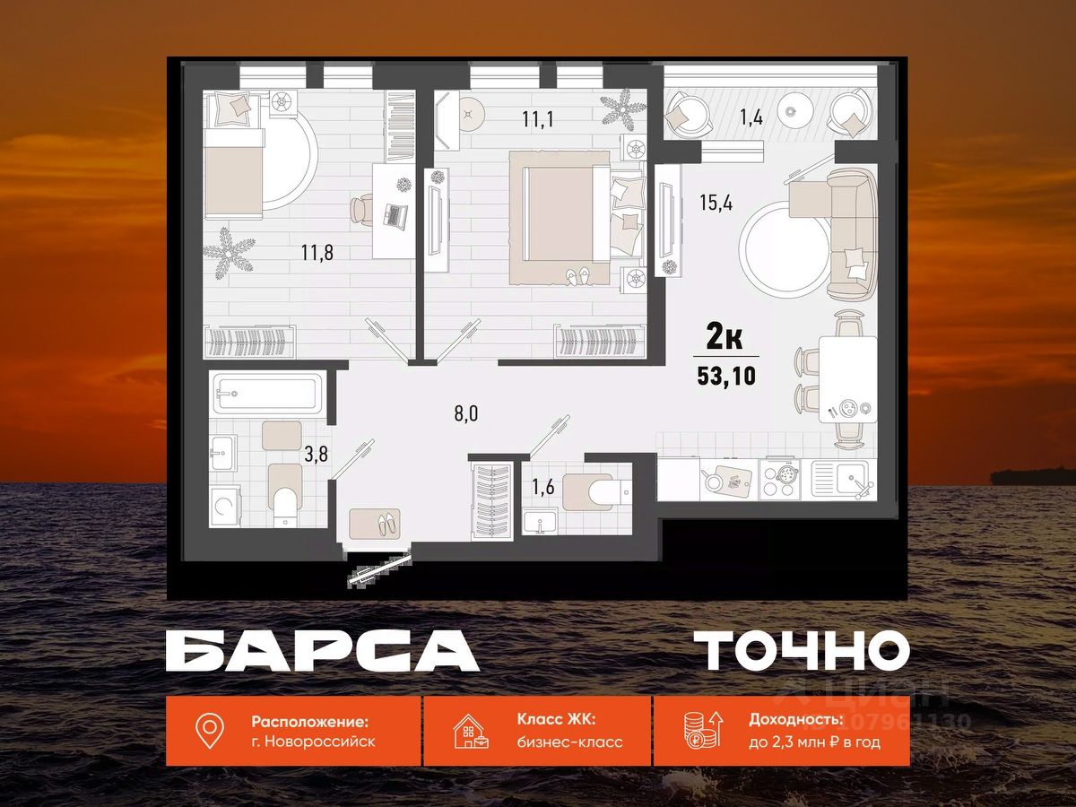 продам 2-к, Новороссийск12 524 000 ₽