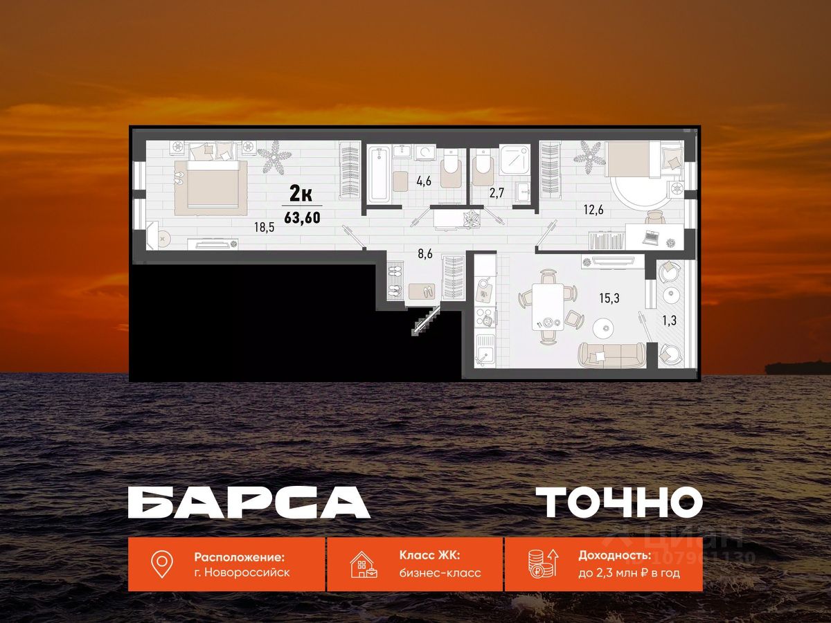продам 2-к, Новороссийск14 494 000 ₽