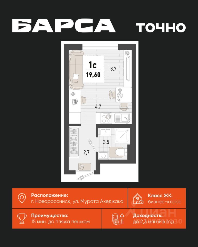 продам 1-к, Новороссийск10 405 836 ₽