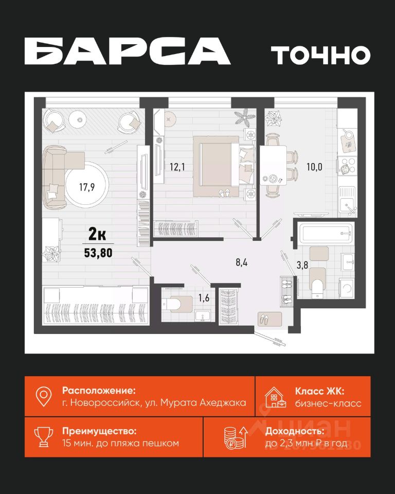 продам 2-к, Новороссийск11 580 450 ₽