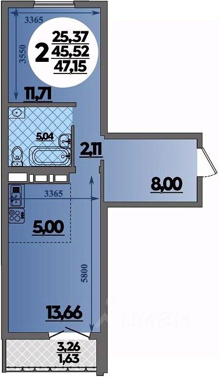 Общая площадь47,15 м2