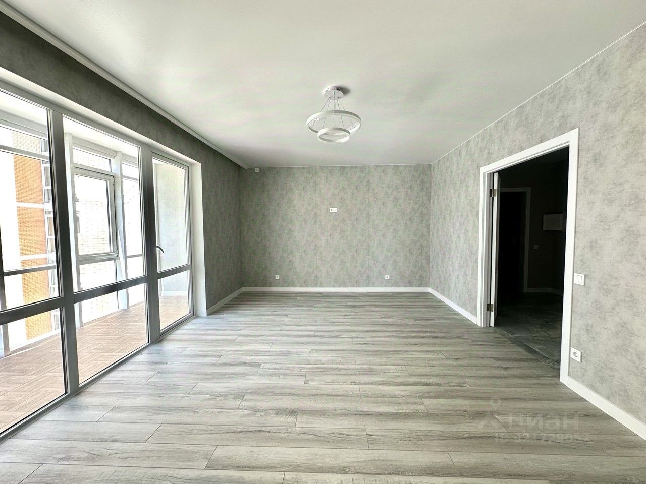 Гостиная 19,50 кв.м квадратной правильной формы, с выходом на панорамную лоджию.