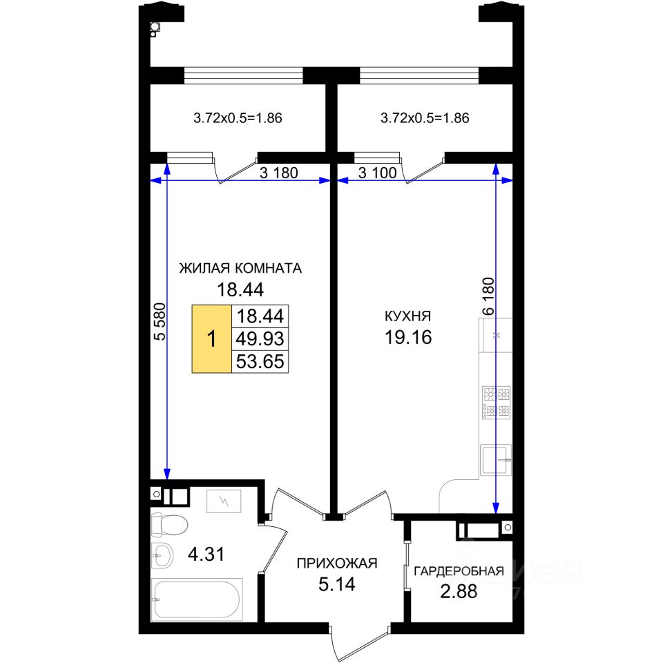 Продаётся 1-комнатная квартира в строящемся доме (Корпус Б5), срок сдачи: IV-кв. 2026, общей площадью 53.65 кв.м., на 4 этаже. Обособленный тихий жилой микрорайон класса комфорт-плюс в Южном районе города Новороссийска, расположенный вдоль новой автодороги ''Южный обход''. Рядом находится крупный транспортный узел. Пересечение Мысхакского шоссе и автодороги Южный обход. Застройщиком будет запущен бесплатный электротранспорт до пляжа в с. Мысхако.