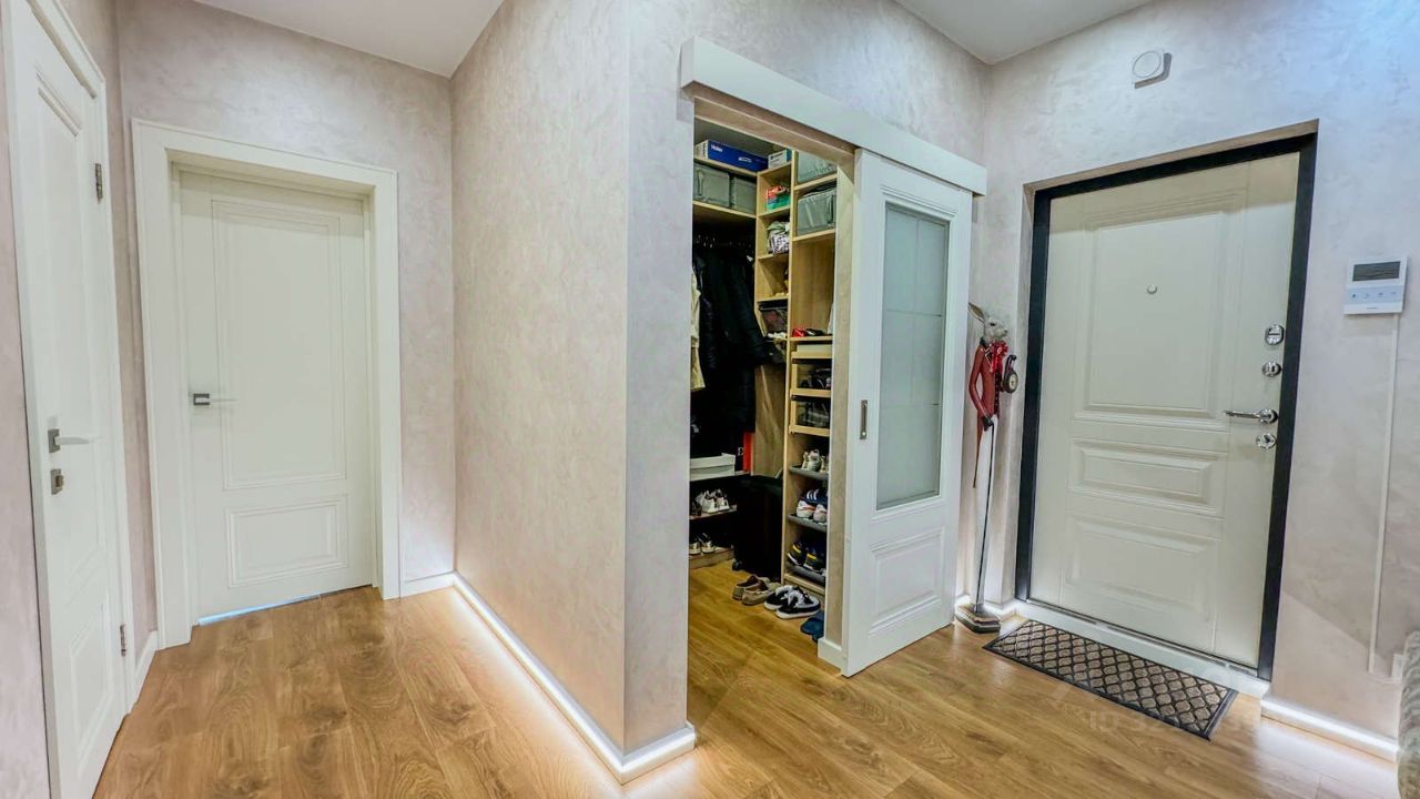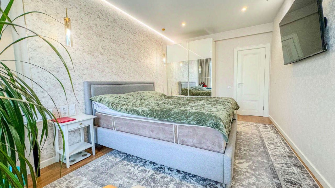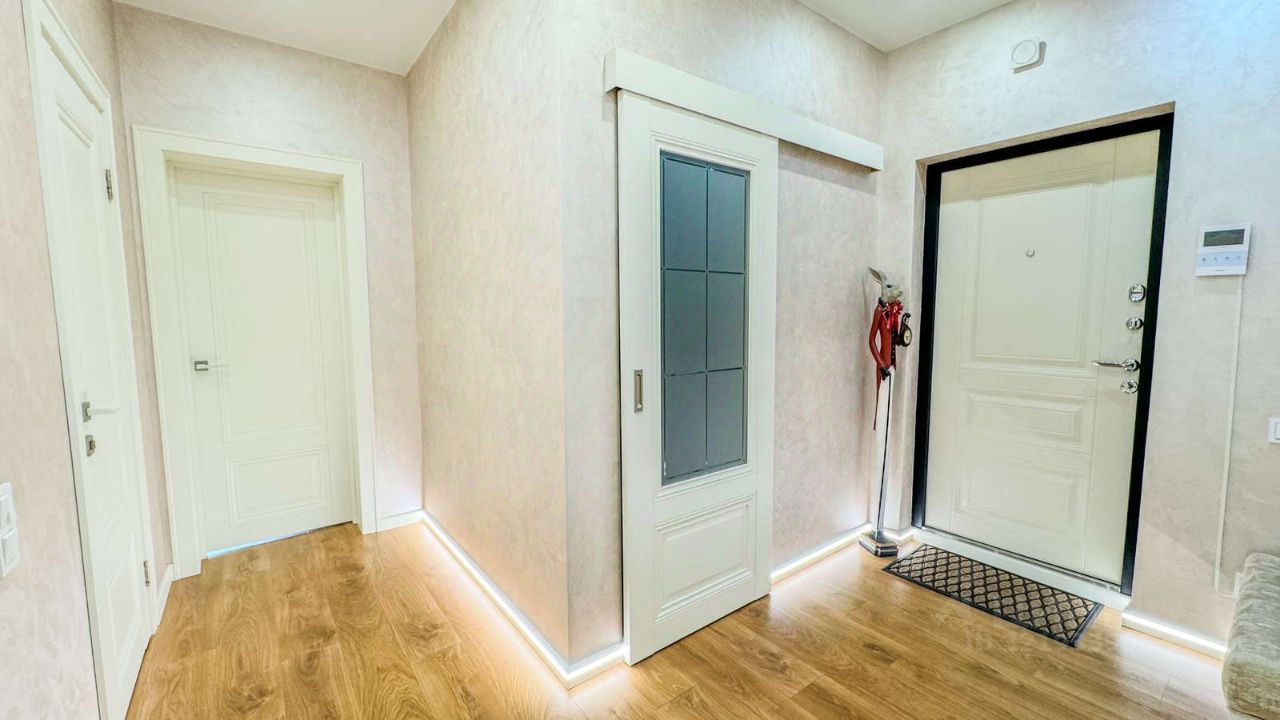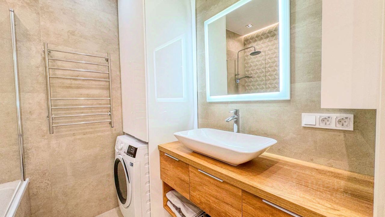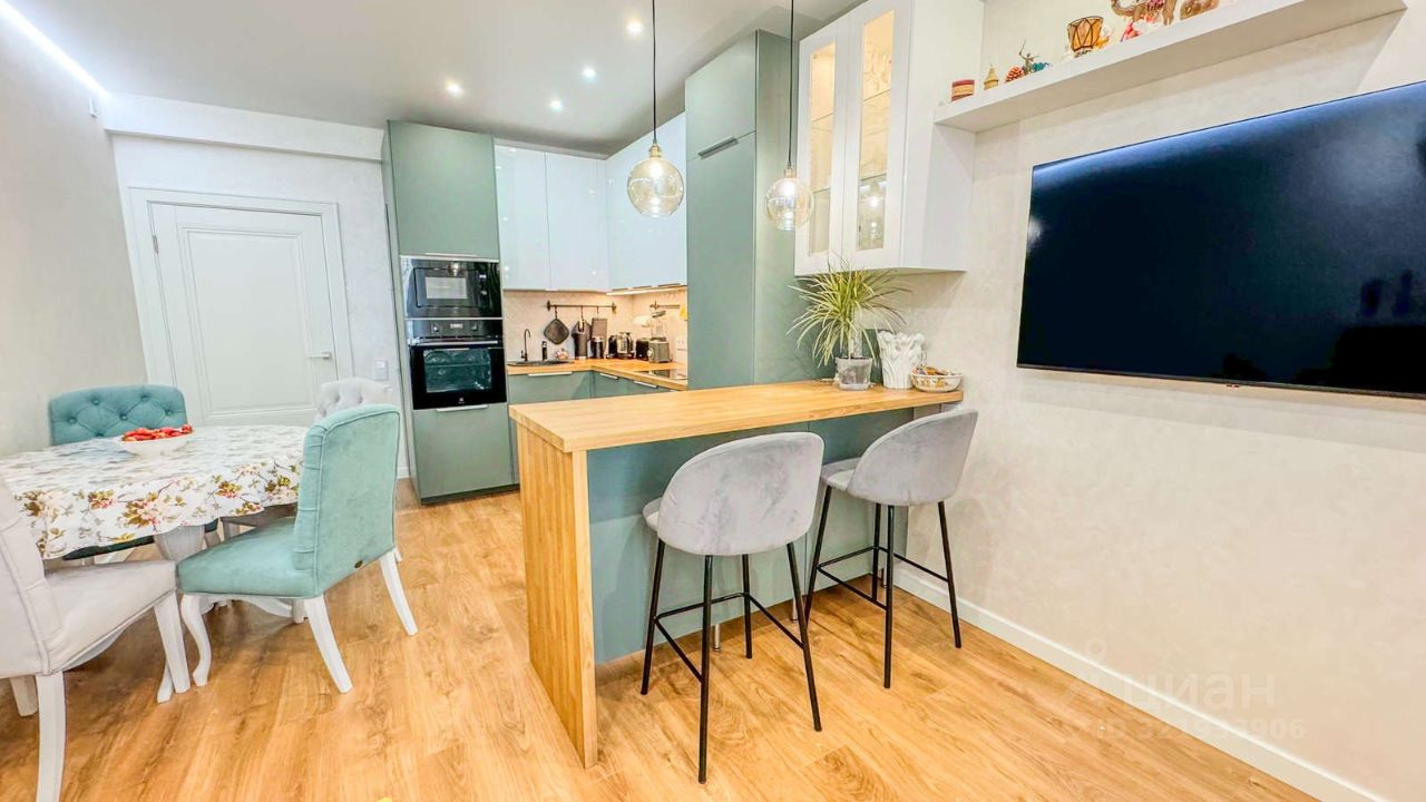 Особенности квартиры: Ремонт с использованием премиальных материалов, элегантная цветовая гамма, стильная мебель и встроенная бытовая техника.