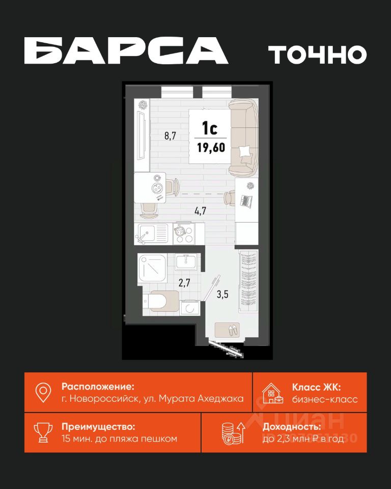продам 1-к, Новороссийск9 151 436 ₽