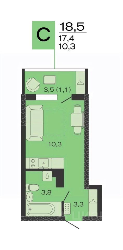 Общая площадь18,5 м2