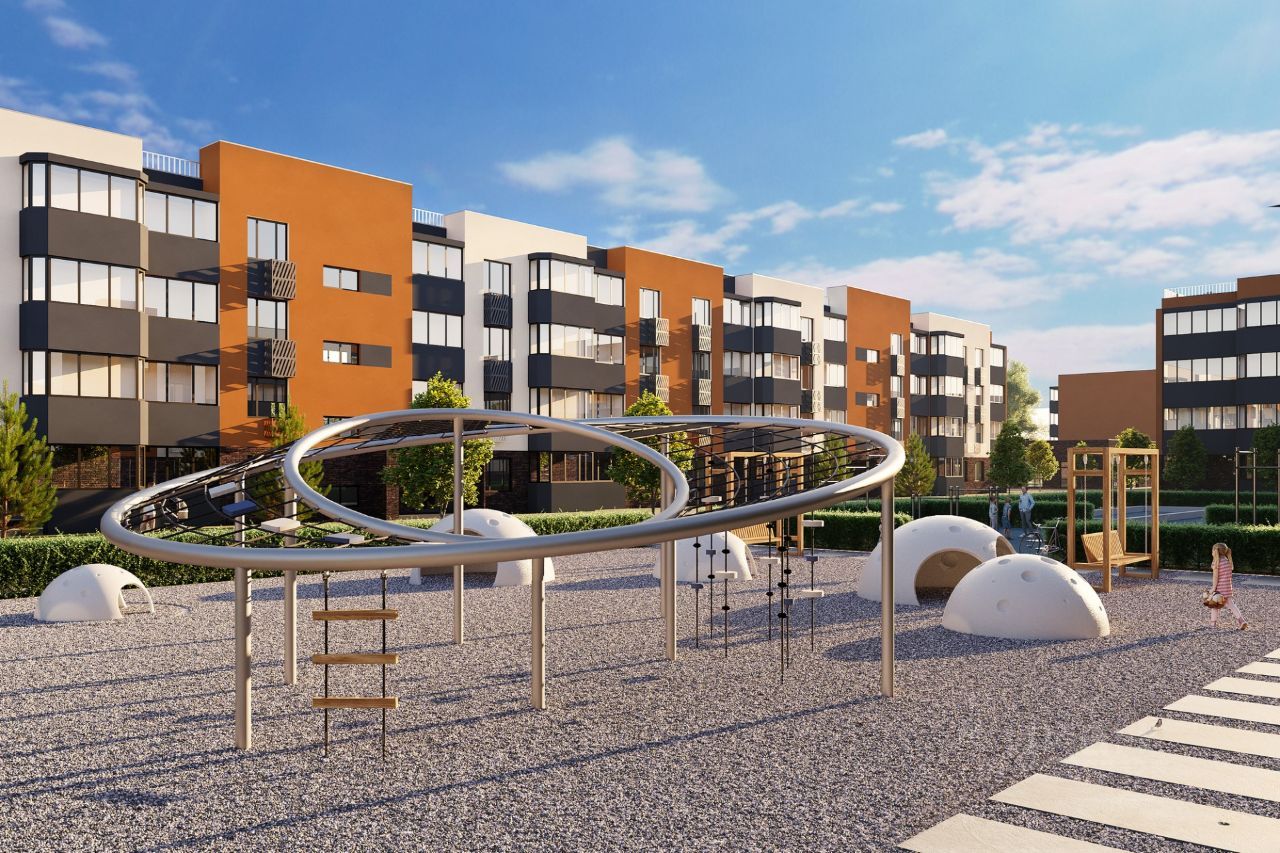 Комплекс строится на 9 гектарах, и состоит из 10 четырех этажных домов Комфорт класса с бесшумными лифтами, окруженных уникальным ландшафтным дизайном с детскими и спортивными площадками, а так же местами для отдыха.