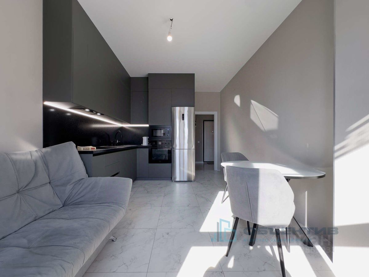 Современная квартира с дизайнерским ремонтом в стиле минимализм, где каждая деталь продумана для комфорта и эстетики. Главное пространство — кухня ручной работы с функциональной планировкой, подсветкой и встроенной техникой: духовка, микроволновая печь, посудомоечная машина и варочная панель. Здесь приятно готовить, ужинать с друзьями или просто наслаждаться вечером дома.