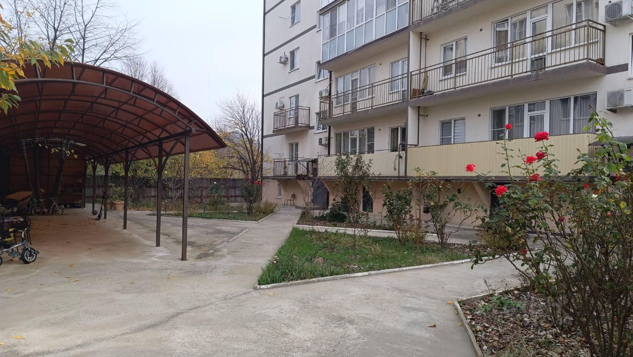 Вид из окон: на горы и персиковый сад. Двор: благоустроенный, с розарием, беседкой, мангалом и местами для хранения колясок/велосипедов. Дополнительно: продаётся с мебелью и техникой, юридически чистая сделка (без залогов и обременений).
