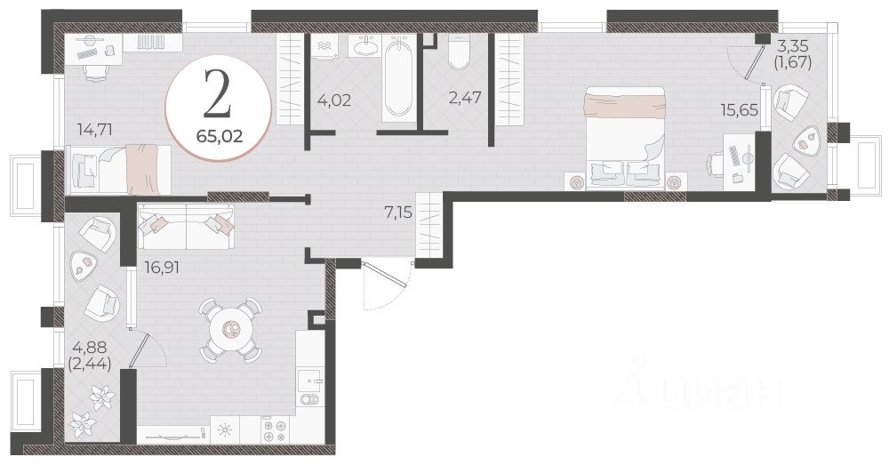 Общая площадь65,02 м2
