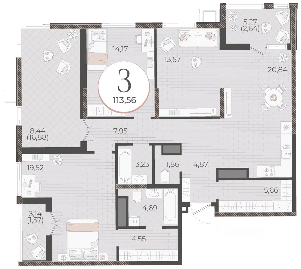 Общая площадь113,56 м2