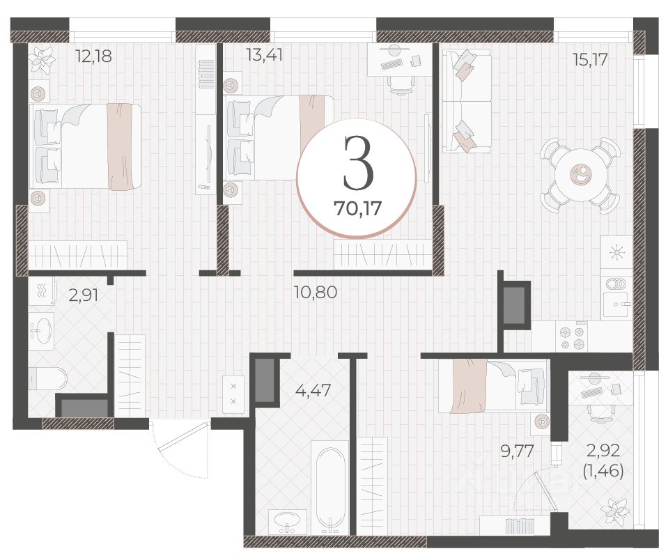 Общая площадь70,17 м2