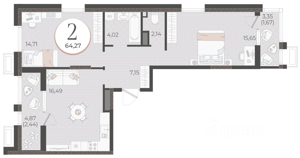 Общая площадь64,27 м2