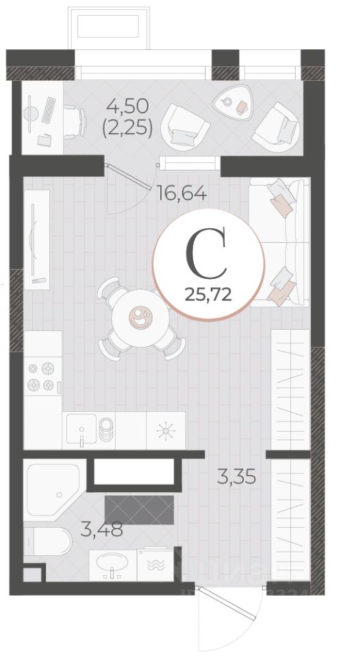 Общая площадь25,72 м2